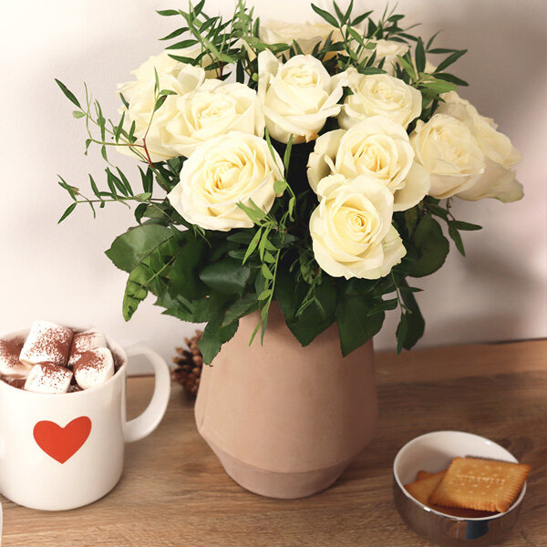 Connaissez-vous la symbolique de la rose blanche ? Elle incarne l’innocence et la lumière, reflétant à merveille la magie des fêtes et l’esprit de Noël. Pour l’occasion, nous avons créé un bouquet de 20 roses blanches, évoquant la pureté d’un matin enneigé et ajoutant une touche de féérie hivernale à vos célébrations. Pour se faire plaisir ou pour offrir, laissez-vous tenter par cette représentation florale ultime, où la beauté et la magie des roses subliment l’esprit de Noël.