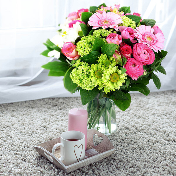 Votre arrangement floral Florajet, composé de fleurs fraîches, pourra être quelque peu différent du visuel présenté qui a valeur indicative. Votre composition, créée spécialement pour vous par un de nos artisans, est susceptible de varier légèrement en fonction de la sensibilité artistique du fleuriste mais aussi de la saisonnalité des fleurs qui la composent. L'esprit du bouquet, sa forme, ses couleurs ainsi que ses essences principales seront respectés par notre artisan fleuriste qui réalisera, à votre intention, cette création inédite quelques minutes avant de la livrer.