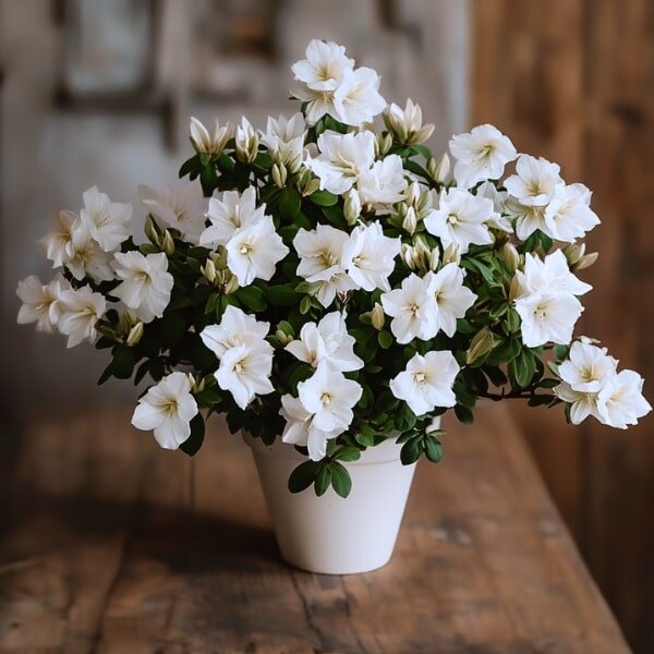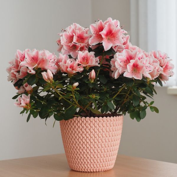 Facile à refleurir, l'azalée déploie de magnifiques fleurs claires et délicates, mises en valeur grâce à son feuillage intense.