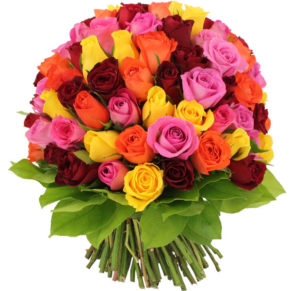 Bouquet de 100 roses multicolores.