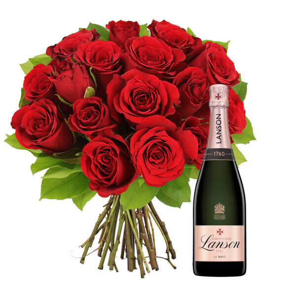 Difficile de faire plus romantique que cette association : 15 roses rouges fraîches accompagnées d'une demi-bouteille de Lanson Rosé. Un classique qui fonctionne pour la Saint-Valentin, un anniversaire ou simplement pour faire plaisir.