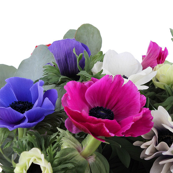 Faites entrer la couleur dans votre intérieur, avec ce bouquet d'anémones françaises. Mélange de couleurs vives : rouge ardent, rose éclatant, violet envoûtant et blanc apaisant, formant un bouquet apportant jovialité et grâce à chaque espace. Idéal pour attendre plus simplement l'arrivée du printemps.