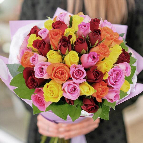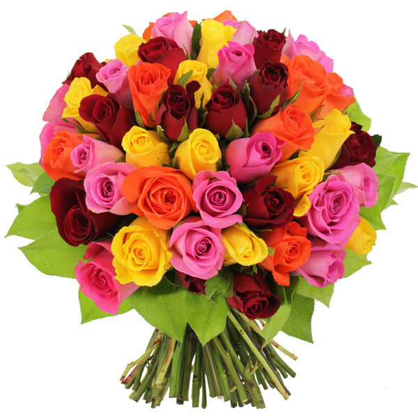 Bouquet de 50 roses multicolores.