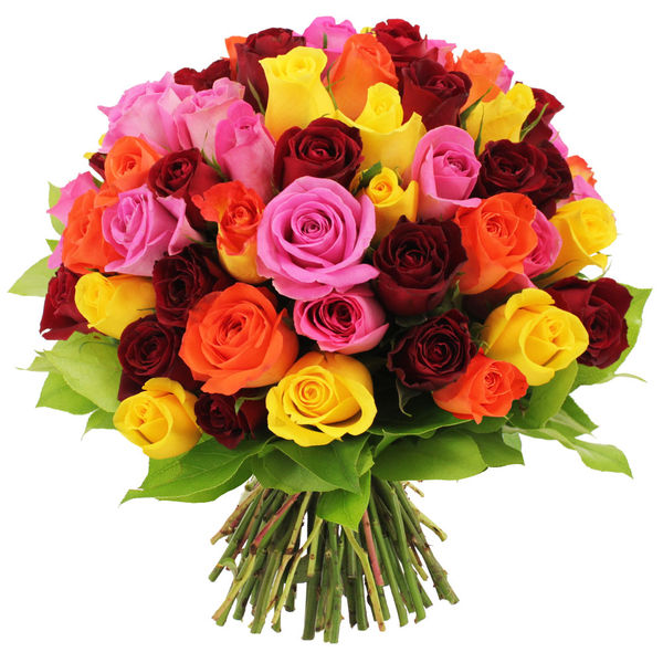 Bouquet de 60 roses multicolores.