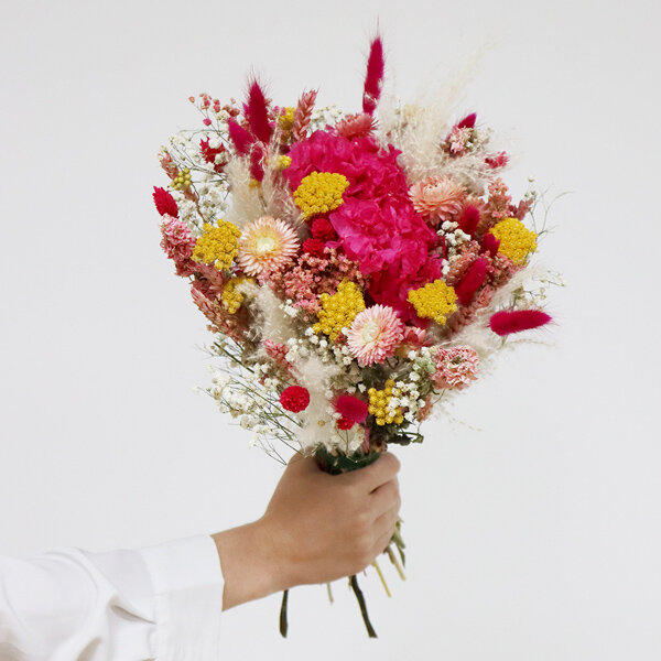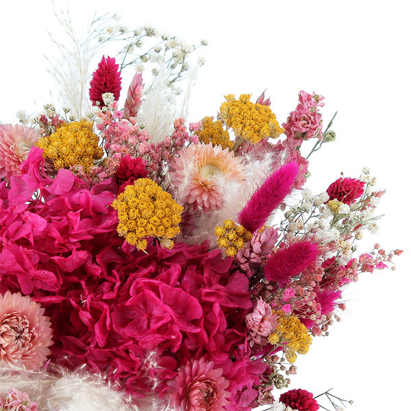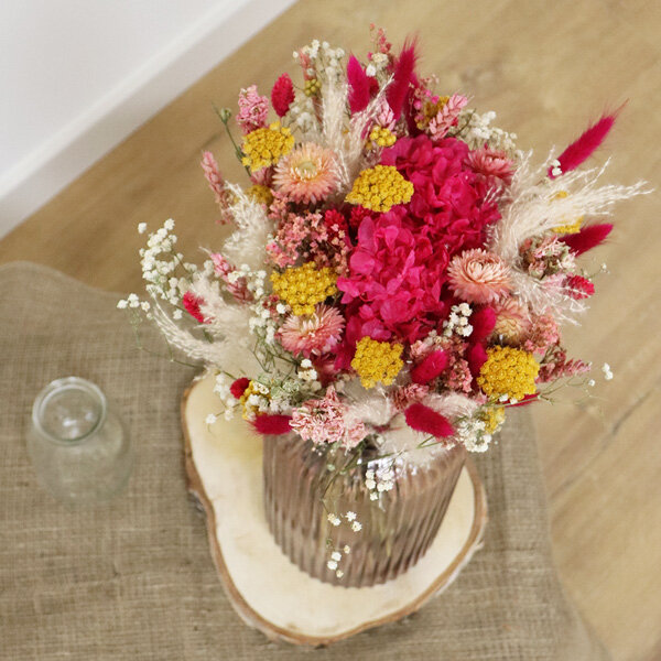 La grande tendance des fleurs séchées se perpétue cette année avec notre nouveau bouquet Baya. Dans cette création florale, le rose est à l'honneur, incarnant la délicatesse et l'élégance intemporelles. Confectionné avec soin, cet ensemble floral réunit un assortiment élégant de végétaux séchés et une magnifique tête d'hortensia stabilisé, offrant ainsi une composition artisanale raffinée. Ajoutez une touche de douceur et de charme à votre décoration intérieure en commandant dès maintenant votre bouquet Baya.