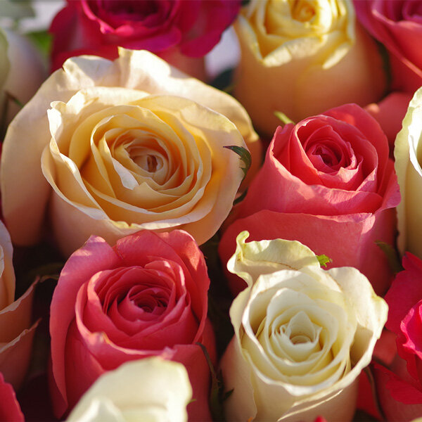 Un moment de douceur se profile à l’horizon à la vue de cet étonnant carré de roses pastels. Un mélange de romantisme et de modernisme concentré au sein de cette exclusivité florale à offrir sans modération aux personnes qui vous sont chères.