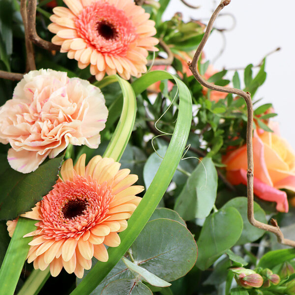 Votre arrangement floral Florajet, composé de fleurs fraîches, pourra être quelque peu différent du visuel présenté qui a valeur indicative. Votre composition, créée spécialement pour vous par un de nos artisans, est susceptible de varier légèrement en fonction de la sensibilité artistique du fleuriste mais aussi de la saisonnalité des fleurs qui la composent. L'esprit du bouquet, sa forme, ses couleurs ainsi que ses essences principales seront respectés par notre artisan fleuriste qui réalisera, à votre intention, cette création inédite quelques minutes avant de la livrer.