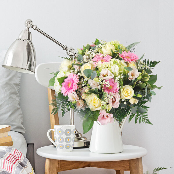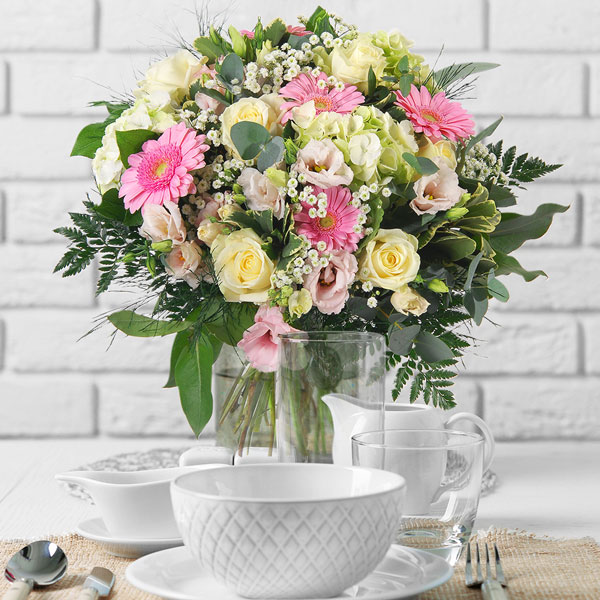 Votre arrangement floral Florajet, composé de fleurs fraîches, pourra être quelque peu différent du visuel présenté qui a valeur indicative. Votre composition, créée spécialement pour vous par un de nos artisans, est susceptible de varier légèrement en fonction de la sensibilité artistique du fleuriste mais aussi de la saisonnalité des fleurs qui la composent. L'esprit du bouquet, sa forme, ses couleurs ainsi que ses essences principales seront respectés par notre artisan fleuriste qui réalisera, à votre intention, cette création inédite quelques minutes avant de la livrer.