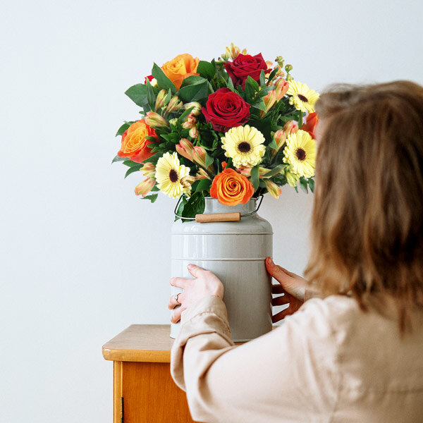 Votre arrangement floral Florajet, composé de fleurs fraîches, pourra être quelque peu différent du visuel présenté qui a valeur indicative. Votre composition, créée spécialement pour vous par un de nos artisans, est susceptible de varier légèrement en fonction de la sensibilité artistique du fleuriste mais aussi de la saisonnalité des fleurs qui la composent. L'esprit du bouquet, sa forme, ses couleurs ainsi que ses essences principales seront respectés par notre artisan fleuriste qui réalisera, à votre intention, cette création inédite quelques minutes avant de la livrer.
