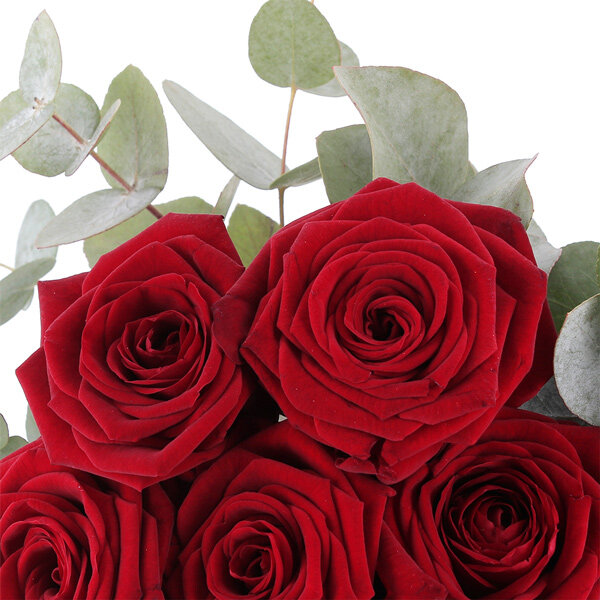 Chaque pétale de ces magnifiques roses rouges Red Naomi respire la passion et la romance. Les roses, d'une couleur rouge profonde, symbolisent un amour ardent et sincère. L'eucalyptus qui les entoure apporte une touche de fraîcheur et d'élégance, mettant en valeur la beauté des fleurs de l'amour. Avec sa forme de coeur, ce bouquet témoignera de la plus belle des manières, tous vos sentiments les plus sincères.