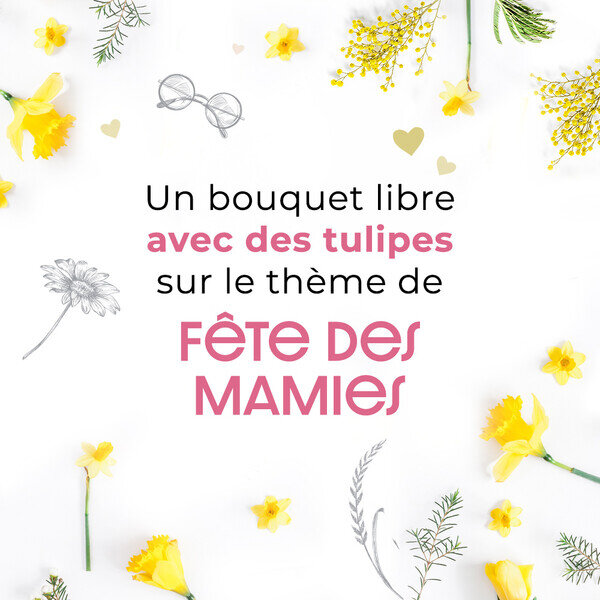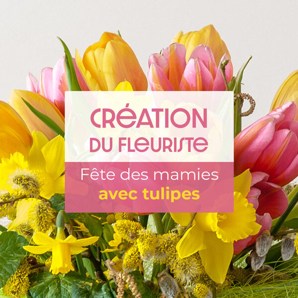 Votre artisan fleuriste réalisera une création spéciale fête des grands-mères avec des tulipes, en fonction de la touche artistique qui lui est propre, de la tendance du moment, et des fleurs à sa disposition selon la saison. Le visuel présenté est non contractuel.