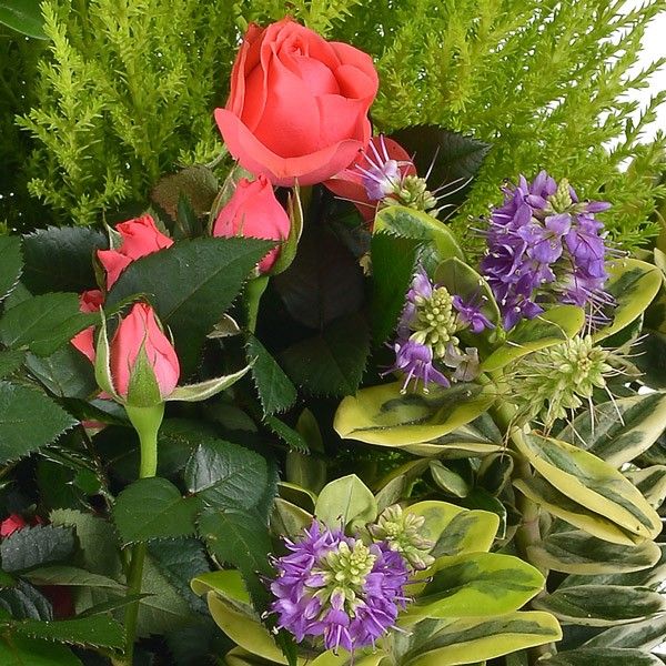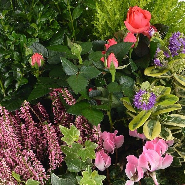 Cette composition de plantes dans les tons rose et vert composée de cyclamen, de rosier et autres plantes et fleurettes, s'occupera de transmettre vos sentiments les plus profonds pour rendre dignement hommage dans ce moment douloureux. Les fleurs apaisent les maux et apporteront avec parcimonie, un brin de douceur pour soulager la peine engendrée par la perte d'un être cher. Pour apporter un soutien supplémentaire, nous vous proposons des messages de condoléances sobres et brefs à ajouter à votre composition florale.