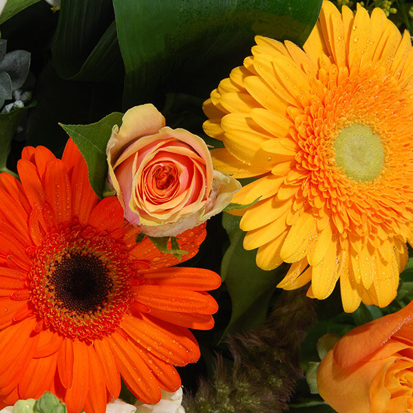 Votre arrangement floral Florajet, composé de fleurs fraîches, pourra être quelque peu différent du visuel présenté qui a valeur indicative. Votre composition, créée spécialement pour vous par un de nos artisans, est susceptible de varier légèrement en fonction de la sensibilité artistique du fleuriste mais aussi de la saisonnalité des fleurs qui la composent. L'esprit du bouquet, sa forme, ses couleurs ainsi que ses essences principales seront respectés par notre artisan fleuriste qui réalisera, à votre intention, cette création inédite quelques minutes avant de la livrer.