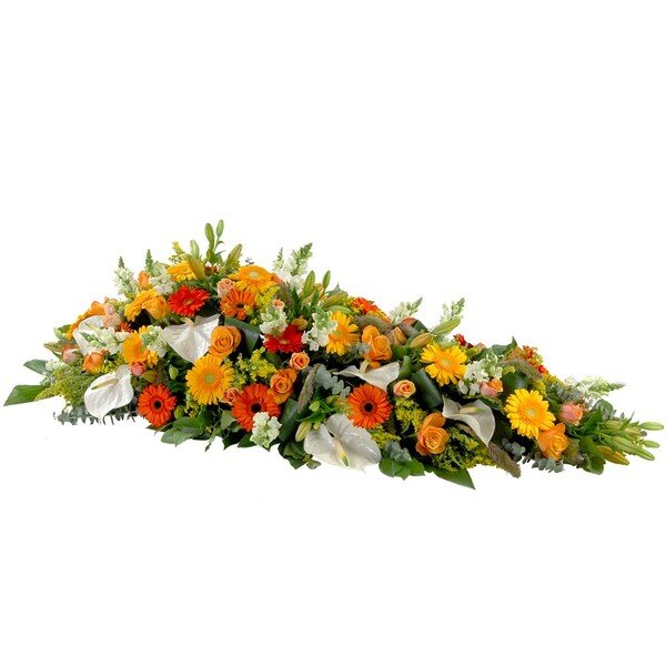Cette magnifique pièce florale, aux tons réconfortants, accompagne avec élégance une cérémonie de deuil et offre la possibilité de fleurir une tombe avec respect. Grâce à la livraison possible directement sur le lieu de cérémonie ou au cimetière, vous exprimez vos sentiments avec un geste sincère et apaisant.