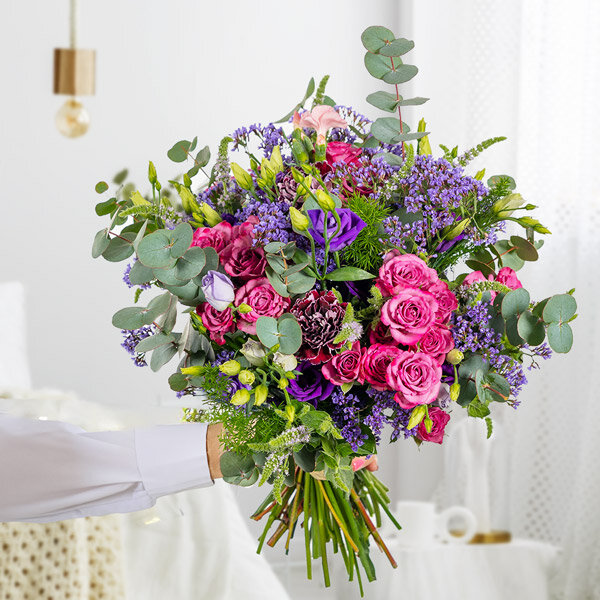 Empereur... Un bouquet qui porte bien son nom. Élaboré avec soin par nos artisans fleuristes, ce majestueux bouquet à la composition généreuse sera le cadeau parfait pour tous les moments tendres de la vie. Les tons violets et roses évoquent douceur et affection, tandis que les roses, lisianthus et œillets offrent une profusion de beauté florale. Commandez-le dès aujourd'hui pour exprimer tout votre amour toute l'année durant et surtout au mois de mai pour votre maman avec la livraison fleurs fête des mères.