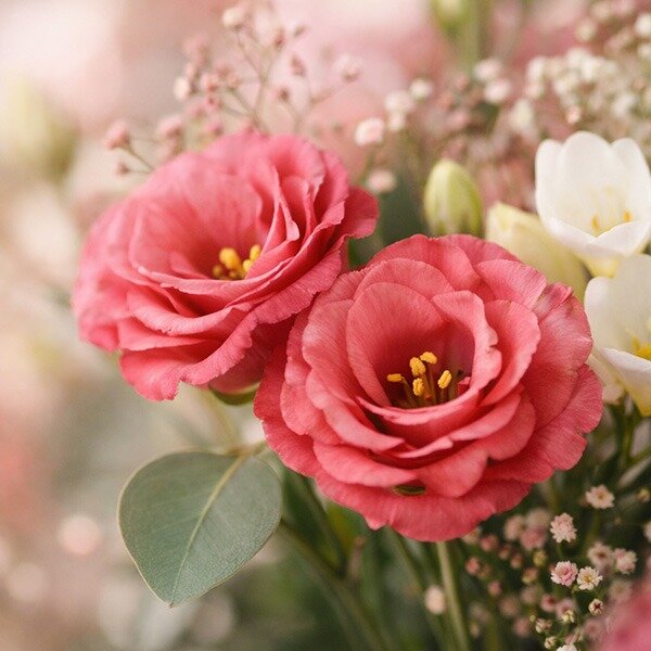 « C’est un bouquet que nous aimons particulièrement réaliser en magasin. Les lisianthus offrent une belle tenue et permettent un montage précis, tout en gardant un rendu très naturel. Le mélange des couleurs fonctionne immédiatement : il donne du caractère sans être trop marqué. Étreinte Florale fait partie de ces compositions qui plaisent autant à ceux qui offrent qu’à ceux qui reçoivent. »