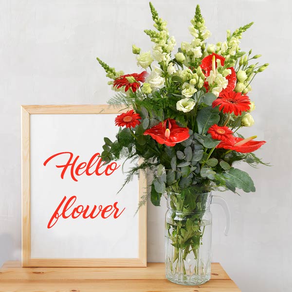 Votre arrangement floral Florajet, composé de fleurs fraîches, pourra être quelque peu différent du visuel présenté qui a valeur indicative. Votre composition, créée spécialement pour vous par un de nos artisans, est susceptible de varier légèrement en fonction de la sensibilité artistique du fleuriste mais aussi de la saisonnalité des fleurs qui la composent. L'esprit du bouquet, sa forme, ses couleurs ainsi que ses essences principales seront respectés par notre artisan fleuriste qui réalisera, à votre intention, cette création inédite quelques minutes avant de la livrer.
