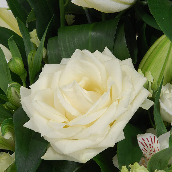 Votre arrangement floral Florajet, composé de fleurs fraîches, pourra être quelque peu différent du visuel présenté qui a valeur indicative. Votre composition, créée spécialement pour vous par un de nos artisans, est susceptible de varier légèrement en fonction de la sensibilité artistique du fleuriste mais aussi de la saisonnalité des fleurs qui la composent. L'esprit du bouquet, sa forme, ses couleurs ainsi que ses essences principales seront respectés par notre artisan fleuriste qui réalisera, à votre intention, cette création inédite quelques minutes avant de la livrer.