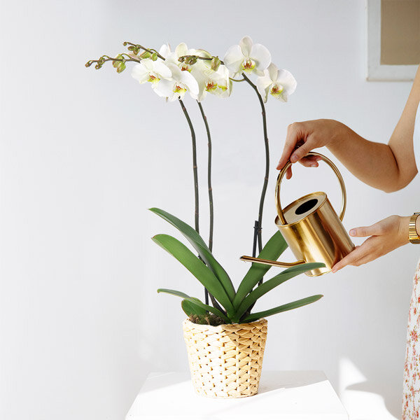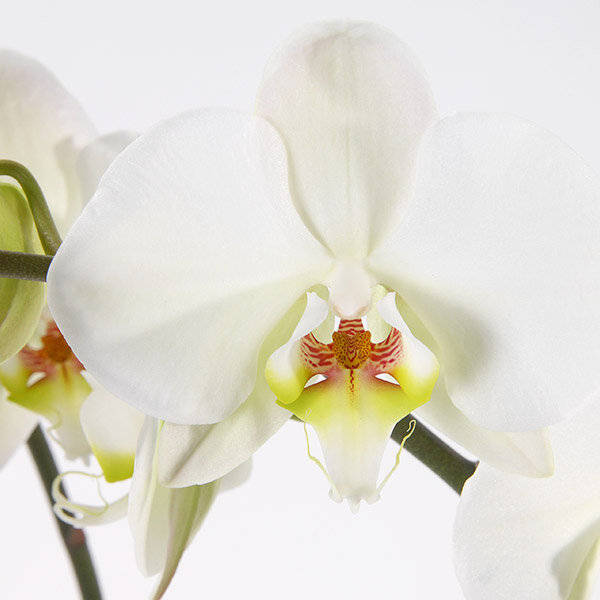 Laissez-vous transporter par l'élévation florale de l'orchidée. Atypique et envoûtante dans sa version inédite de 3 branches, la pureté de son blanc viendra parfaire cette composition remarquable qui illuminera la pièce où elle sera disposée.
