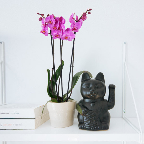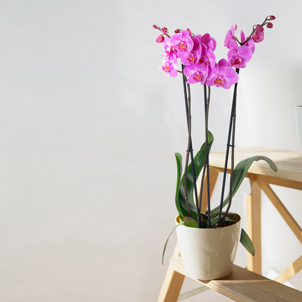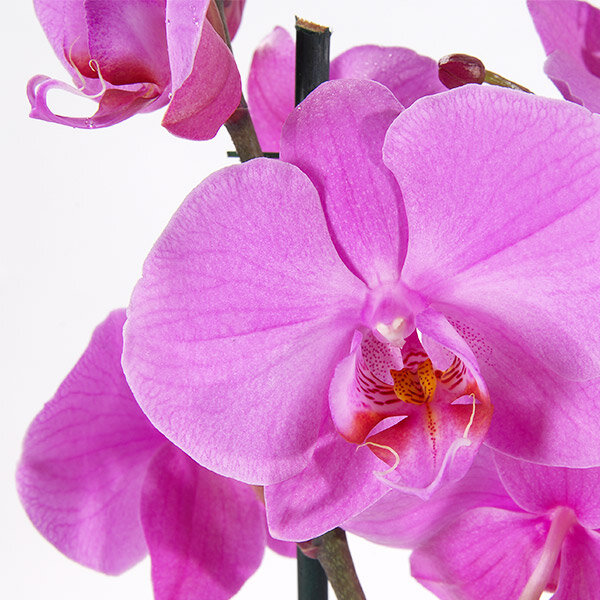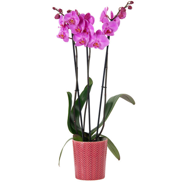 Orchidée Phalaenaopsis 3 branches rose. Le contenant peut varier en fonction des disponibilités chez le fleuriste en charge de votre commande.