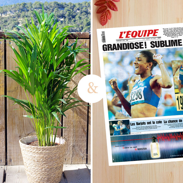 Offrez un cadeau qui respire l'exotisme et le style ! Notre duo cadeau pour une occasion spéciale vous propose un magnifique palmier en pot accompagné d'une impression personnalisée de la Une du journal L'équipe. Sélectionnez la date de l'impression et ajoutez une touche de vacances à ce présent unique en son genre. Préparez-vous à surprendre et à émerveiller avec ce cadeau qui transportera vos proches vers un paradis tropical !