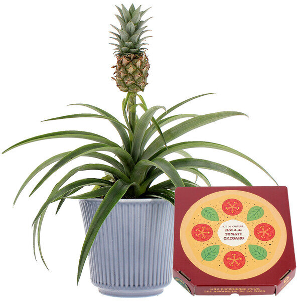 Fan de pizza ? Nous aussi ! C’est pourquoi nous vous présentons le kit d’auto-culture Pizza Lover. À l’intérieur, vous trouverez des graines de basilic, d’origan et de tomates, de quoi réaliser vos meilleures pizzas et régaler tous vos amis ! Et parce que l’ananas, ce n’est pas sur la pizza, nous vous le proposons sous forme de plante décorative. Avec ce kit, apportez une touche de fraîcheur à vos plats et impressionnez vos convives avec des ingrédients cultivés maison !