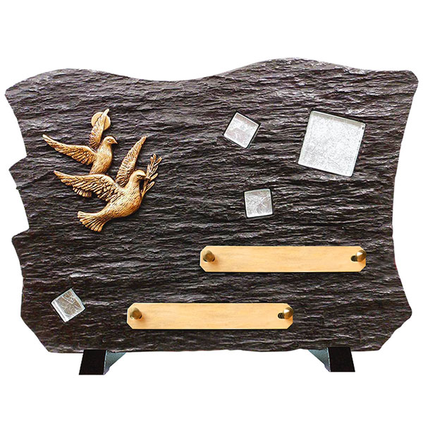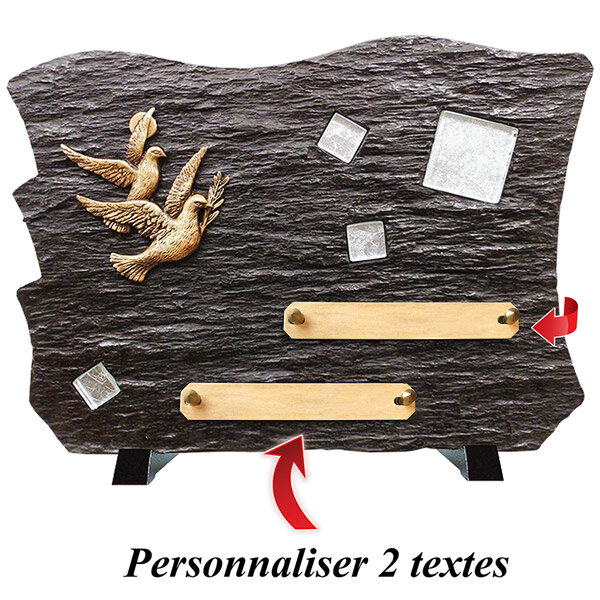 La plaque funéraire Mosaïque est une véritable œuvre d’art qui symbolise l’union des souvenirs, tels les morceaux d’un puzzle précieux rassemblés pour former un tout harmonieux. Deux colombes en bronze veillent sur la surface délicatement travaillée, rappelant la fragilité et la beauté d’un amour éternel. Elle incarne la complexité des émotions et la richesse des souvenirs, conférant à chaque hommage une dimension artistique et spirituelle unique.
