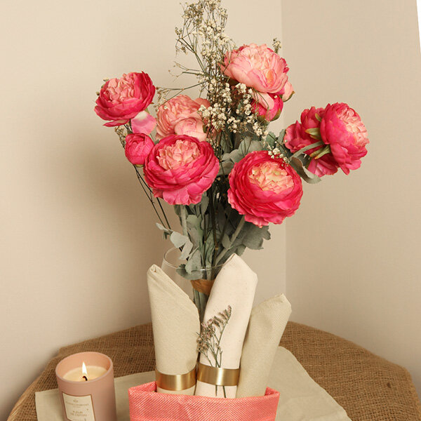 Véritable atout déco, ce bouquet de renoncules en soie s’intègre harmonieusement à tous les styles d’intérieur. Dans un vase design ou en cristal, il apporte immédiatement une note de couleur et de raffinement au salon, à la chambre ou même au bureau. Sa beauté durable en fait une décoration florale idéale pour créer une ambiance douce, chaleureuse et élégante en toute simplicité.