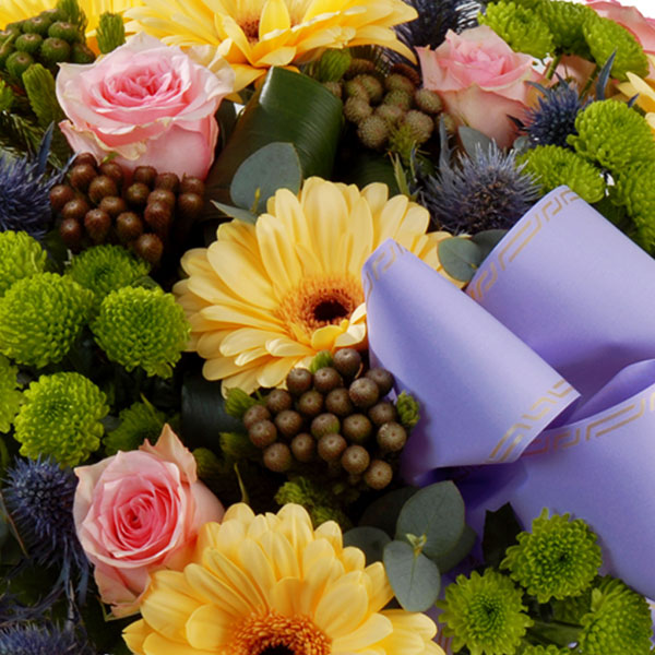 Votre arrangement floral Florajet, composé de fleurs fraîches, pourra être quelque peu différent du visuel présenté qui a valeur indicative. Votre composition, créée spécialement pour vous par un de nos artisans, est susceptible de varier légèrement en fonction de la sensibilité artistique du fleuriste mais aussi de la saisonnalité des fleurs qui la composent. L'esprit du bouquet, sa forme, ses couleurs ainsi que ses essences principales seront respectés par notre artisan fleuriste qui réalisera, à votre intention, cette création inédite quelques minutes avant de la livrer.