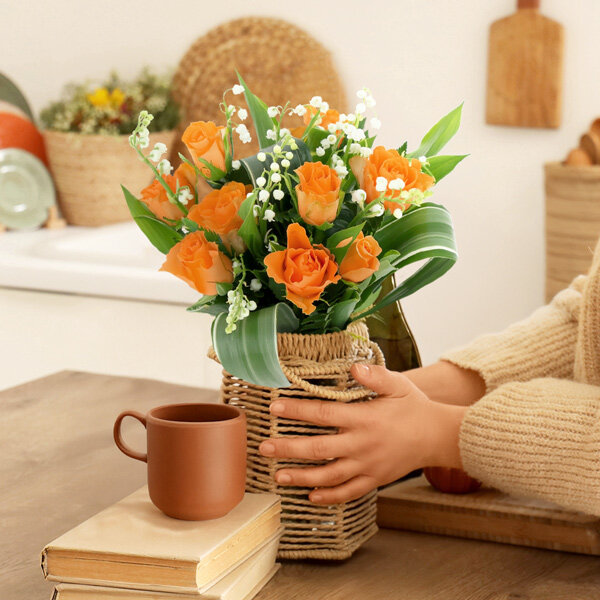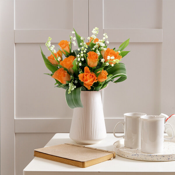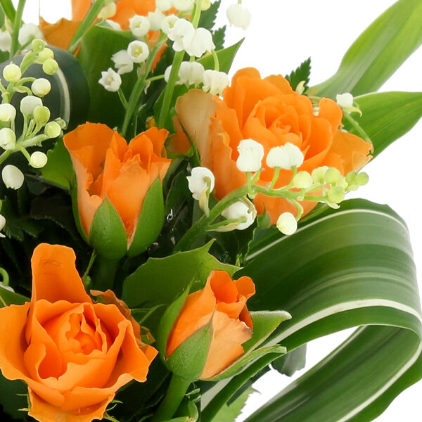 Offrez un souffle de lumière avec ce bouquet ensoleillé aux tons blanc et orange. Le muguet, symbole de chance et de pureté, s’y mêle aux roses orange, chargées de passion et de gratitude. Ensemble, ils créent une composition élégante et pleine de sens, parfaite pour célébrer un moment précieux ou simplement faire plaisir. Chaque détail a été pensé pour émerveiller avec douceur et poésie. Faites livrer ce bouquet en moins de 3h partout en France grâce à la livraison express Florajet.